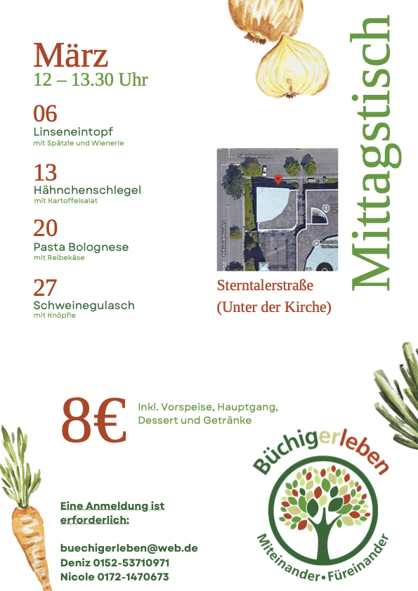 Jetzt anmelden unter buechigerleben@web.de oder bei Deniz unter: 0152-53710971.